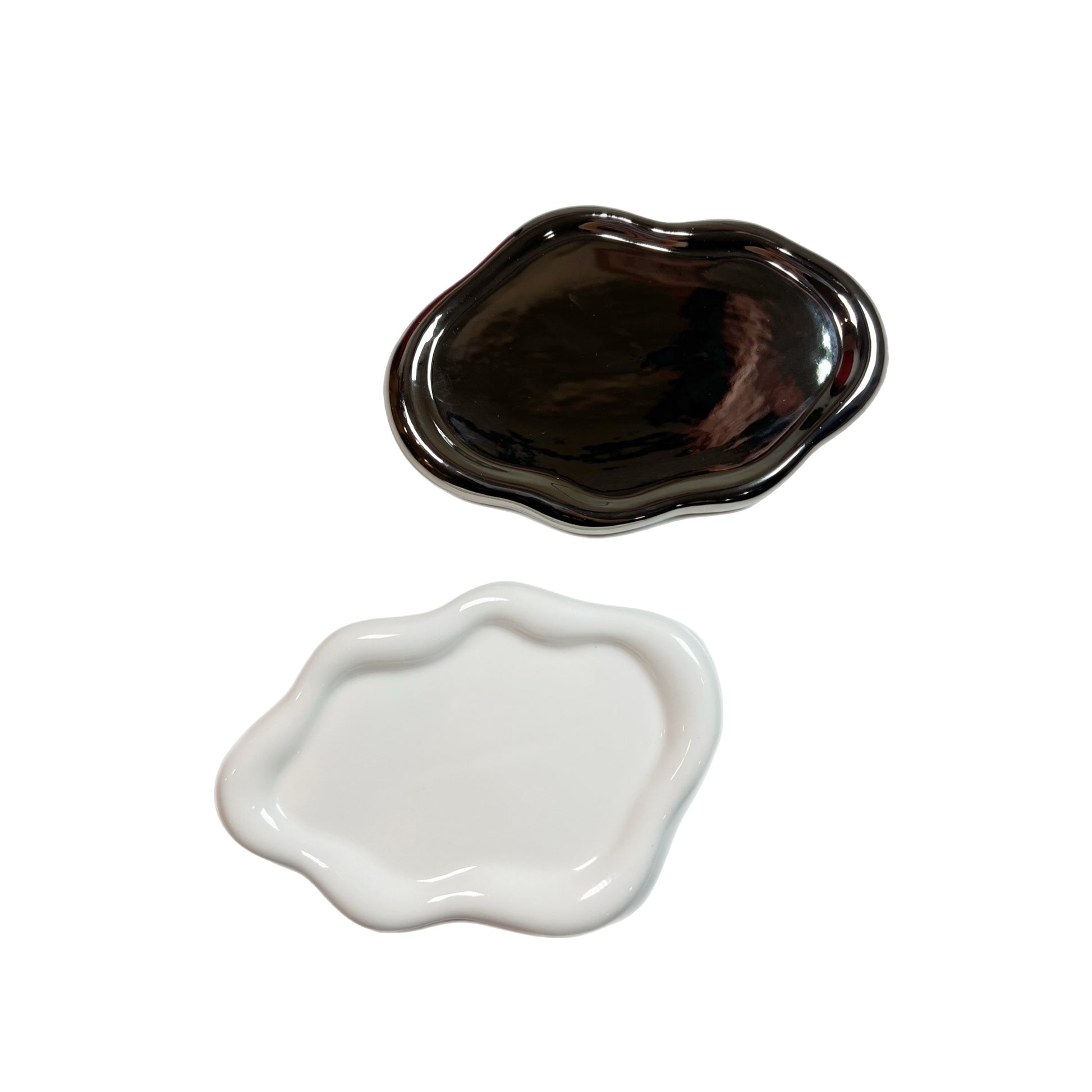 Add a touch of whimsy to your decor with these beautiful cloud shaped ceramic trays, available in silver and white.